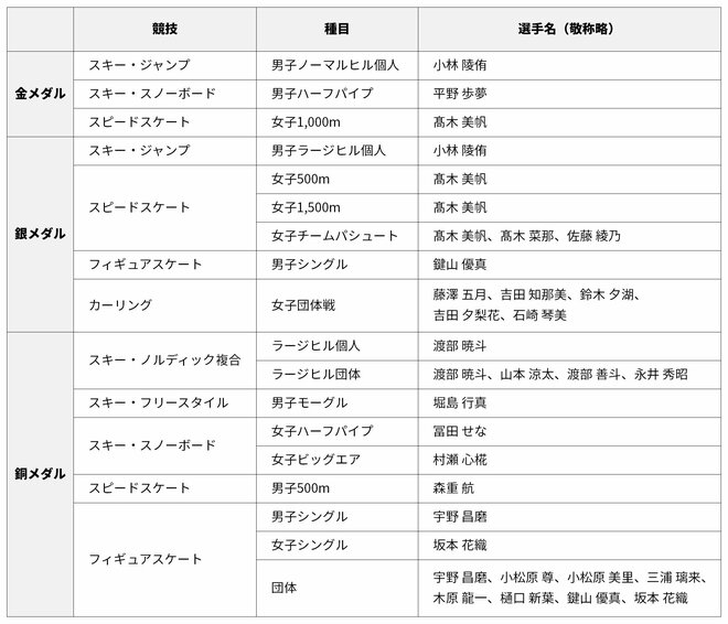 冬季五輪では歴代最多の総メダル数18個を獲得