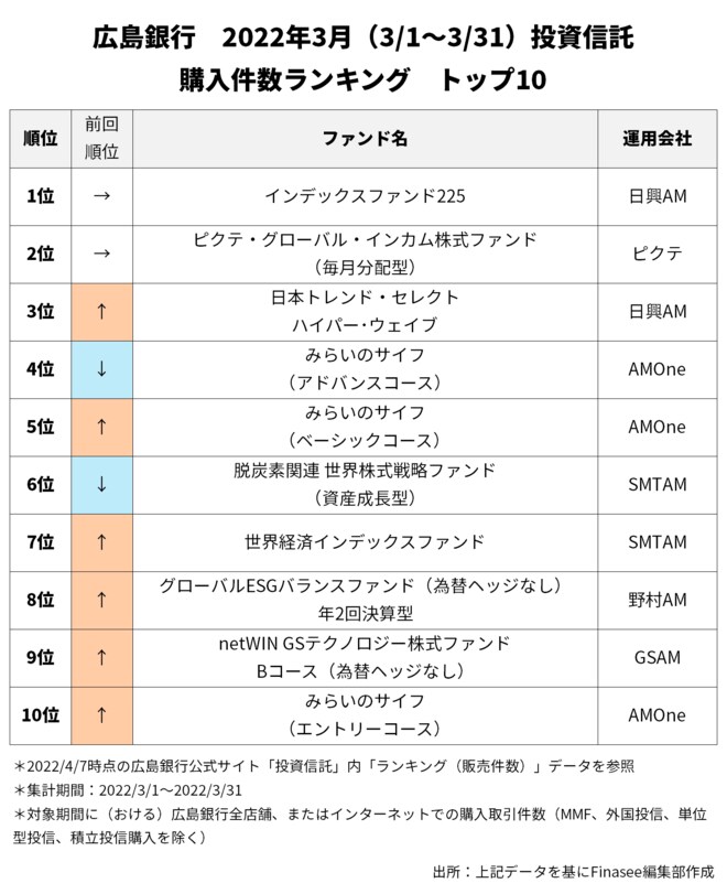 2022年3月、広島銀行で多くの資金を集めたのは以下のファンドだった。