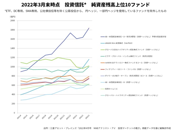 3月の純資産残高トップは「アライアンス・バーンスタイン・米国成長株投信Dコース毎月決算型(為替ヘッジなし)予想分配金提示型」