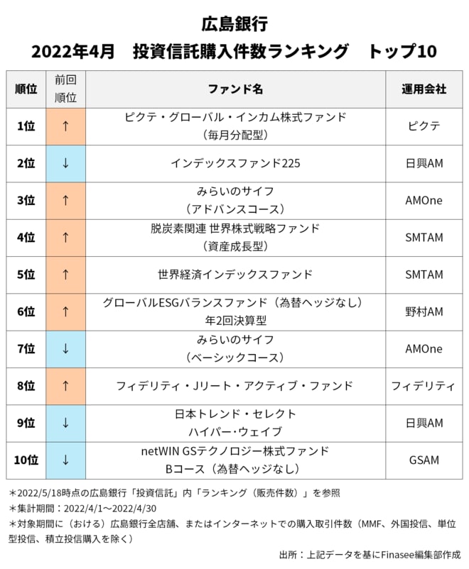 2022年4月、広島銀行で多くの資金を集めたのは以下のファンドだった。