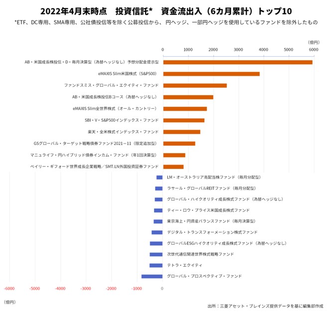 資金流出額1位(6カ月累計)は「グローバル・プロスペクティブ・ファンド」