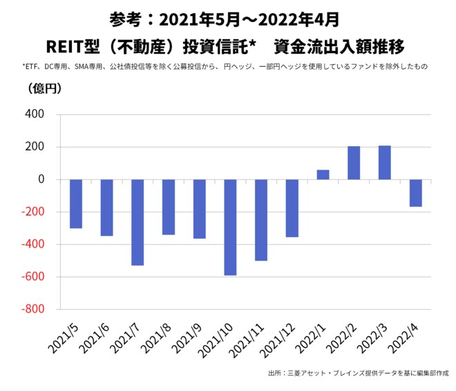 REIT型ファンドの4月リターン1位は、「通貨選択型Jリート・ファンド(毎月分配型)米ドル)」の5.3%だった。同ファンドは、国内のREIT(不動産投資信託)に投資するアクティブファンドである。「円コース」は+0.5%のリターンだったが、円安・ドル高が進んだことによって、同ファンドは+5.3%と高いリターンになった。