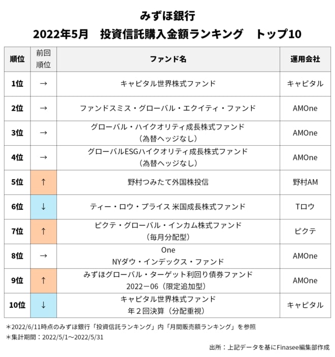 2022年5月、みずほ銀行で多くの資金を集めたのは以下のファンドだった。