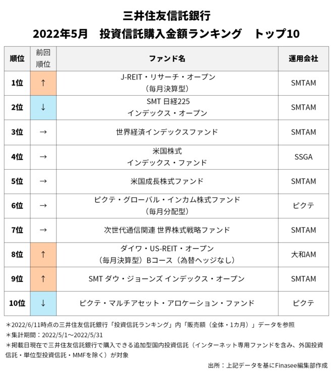 2022年5月、三井住友信託銀行で多くの資金を集めたのは以下のファンドだった。