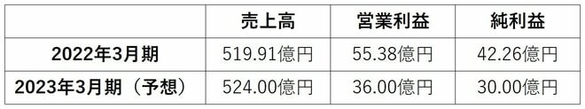 なお今期の売上高は524億円、純利益は30億円となる見込みです。円安やウクライナ侵攻による原油高、部品の供給不足により一時は落ち込みを見せましたが、売り上げや経費削減が順調に進んでいることから今期の予想は上方修正されました。