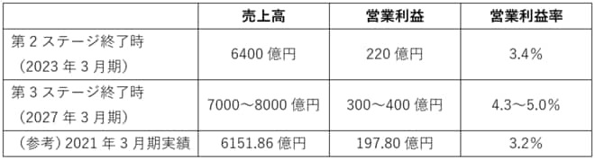 中期経営計画では具体的な数値目標も示されました。2026年度(2027年3月期)までに売上高は最大8000億円、営業利益は最大400億円を目指す内容です。