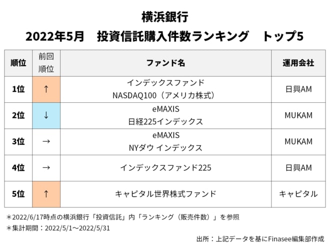 2022年5月、横浜銀行で多くの資金を集めたのは以下のファンドだった。