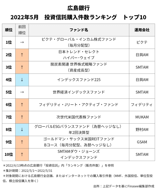 2022年5月、広島銀行で多くの資金を集めたのは以下のファンドだった。
