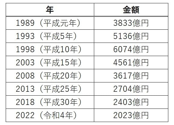 しかしその後、音楽ソフトの売り上げは急降下。2008年には3617億円と、1998年の6074億円からわずか10年で半分近くまで落ち込んでしまいます。さらに直近の2022年には2023億円と、全盛期の約3分の1になってしまいました。