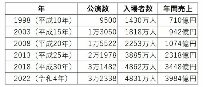 出所:(一社)コンサートプロモーターズ協会「基礎調査推移表」