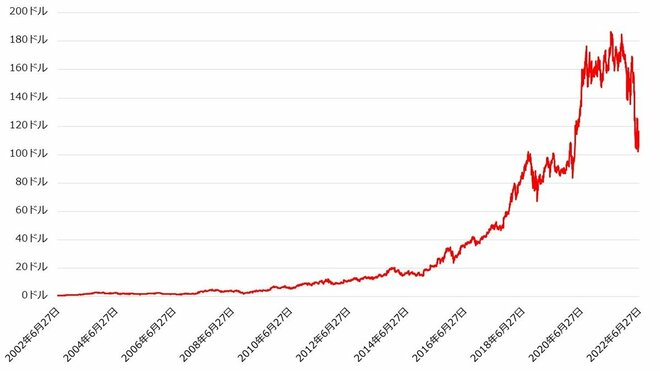 【アマゾン 過去20年の株価チャート(2022年6月27日時点)】