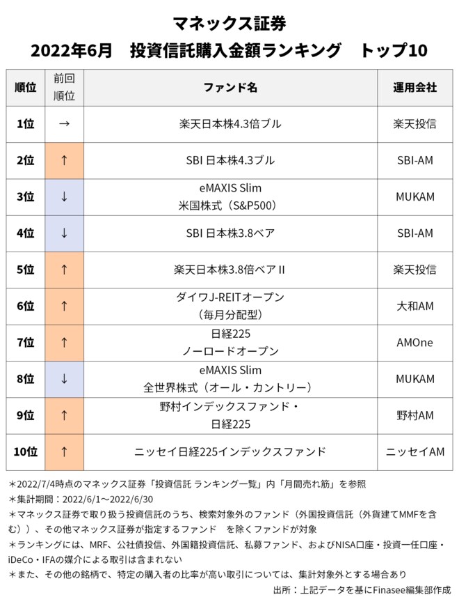 2022年6月、マネックス証券で多くの資金を集めたのは以下のファンドだった。