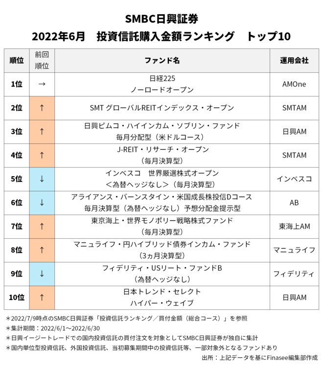 2022年6月、SMBC日興証券で多くの資金を集めたのは以下のファンドだった。