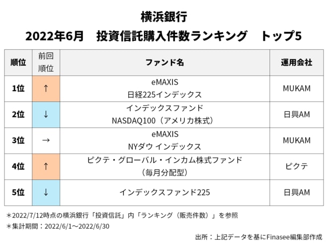 2022年6月、横浜銀行で多くの資金を集めたのは以下のファンドだった。