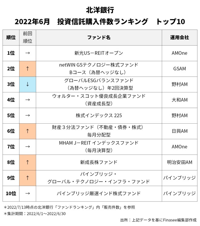 2022年6月、北洋銀行で多くの資金を集めたのは以下のファンドだった。