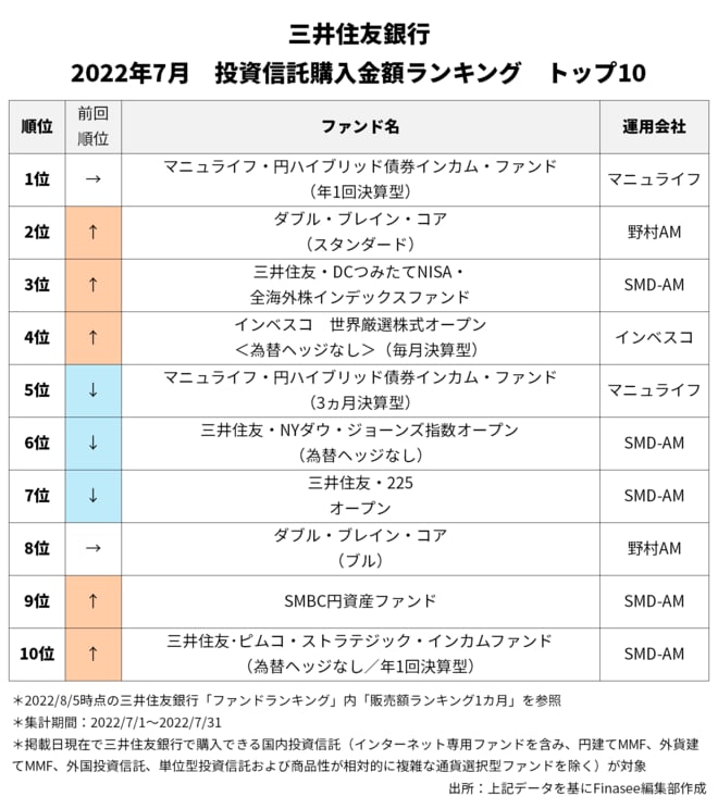 2022年7月、三井住友銀行で多くの資金を集めたのは以下のファンドだった。