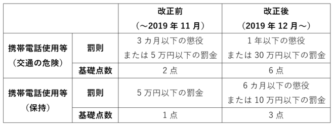 増加する運転中の「ながらスマホ」を問題視した政府は、2019年12月に罰則を強化しました。それまで最大でも5万円以下の罰金であったところ、最大30万円以下の罰金に引き上げられます。携帯電話などの使用に起因する交通事故件数は、2019年に2645件ありましたが、2020年には1283件と半分以下に減少しました。