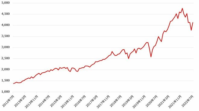 これまで全体的に大きく値上がりしてきたこともアメリカ株式の魅力でしょう。例えば代表的なアメリカ株式指数「S&P500」は、過去10年間でおよそ3倍になりました。1年あたり約11.6%上昇した計算です。これほどのリターンを得られるなら、投資家から人気があるのもうなずけますね。