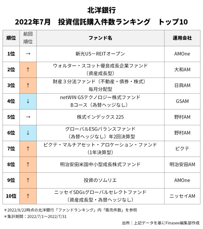2022年7月、北洋銀行で多くの資金を集めたのは以下のファンドだった。