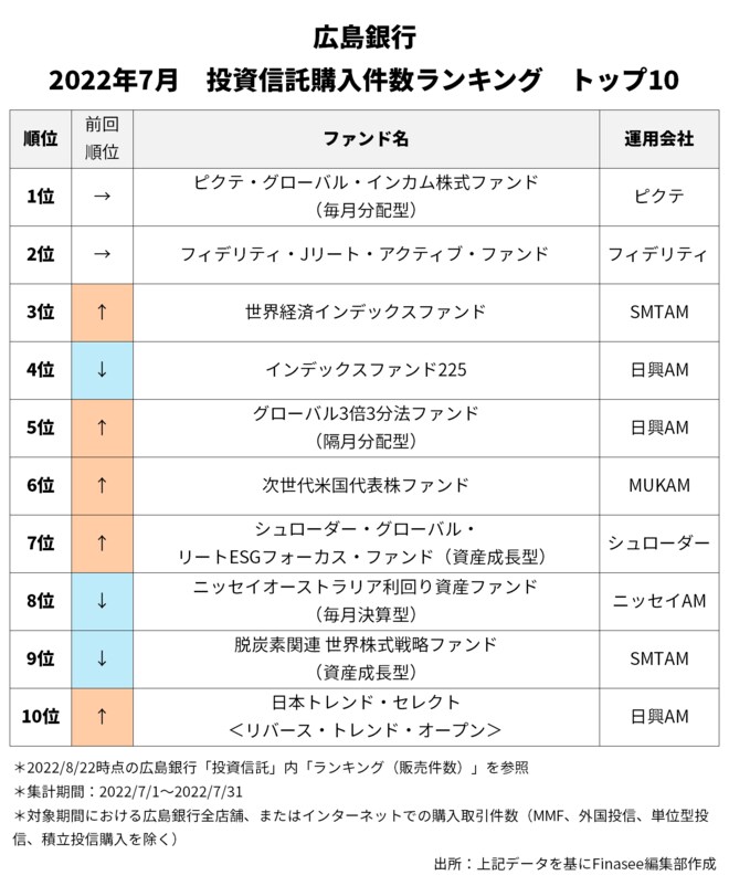 2022年7月、広島銀行で多くの資金を集めたのは以下のファンドだった。