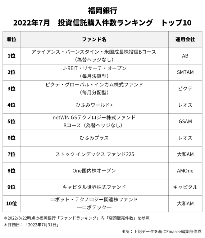 2022年7月、福岡銀行で多くの資金を集めたのは以下のファンドだった。