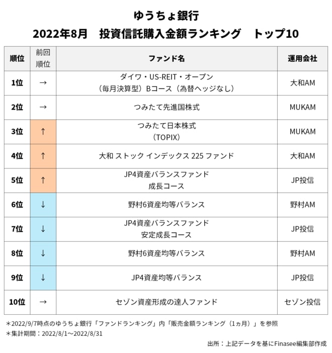 2022年8月、ゆうちょ銀行で多くの資金を集めたのは以下のファンドだった。