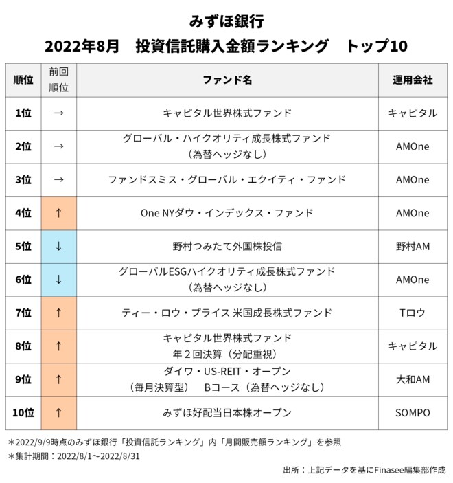 2022年8月、みずほ銀行で多くの資金を集めたのは以下のファンドだった。