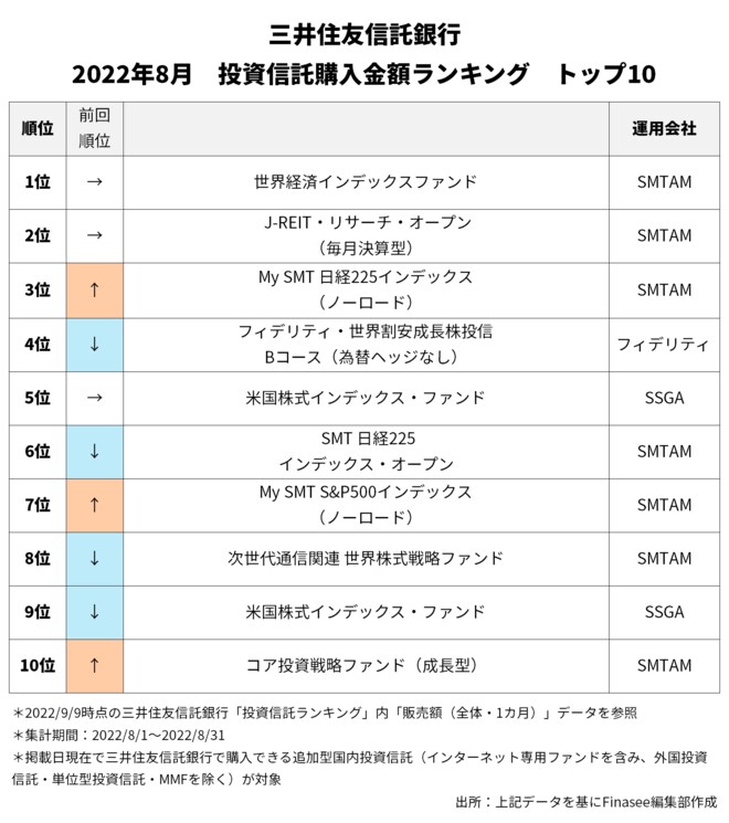 2022年8月、三井住友信託銀行で多くの資金を集めたのは以下のファンドだった。