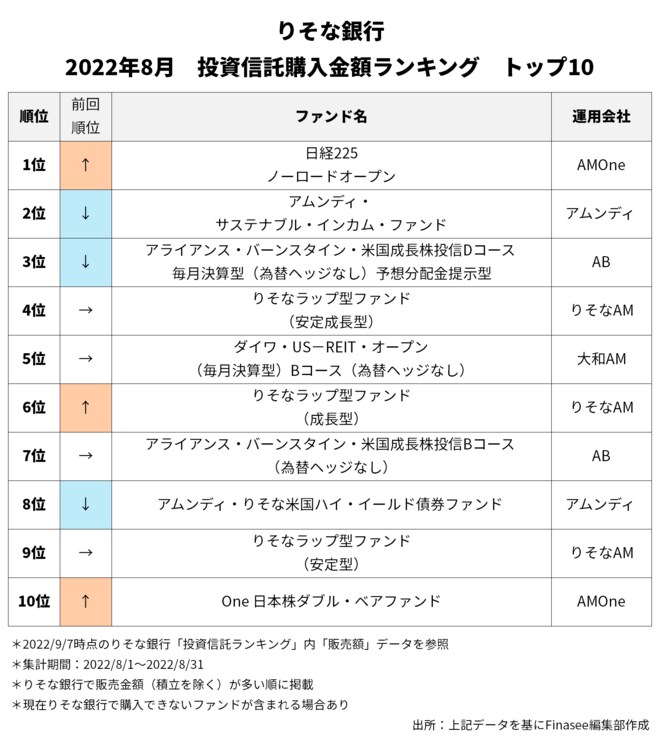 2022年8月、りそな銀行で多くの資金を集めたのは以下のファンドだった。
