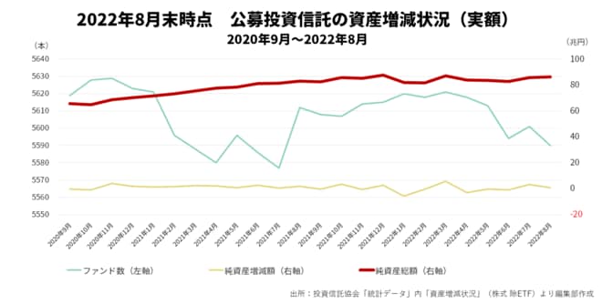 公募株式投資信託(ETFを除く)は5,171億円の資金流入で21カ月連続の資金流入超