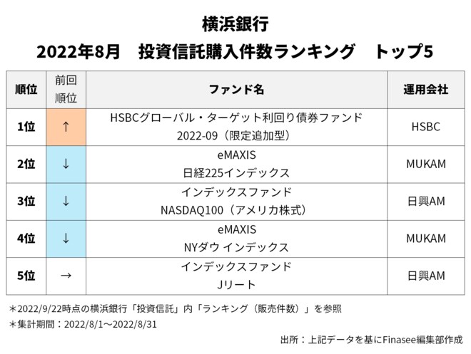 2022年8月、横浜銀行で多くの資金を集めたのは以下のファンドだった。