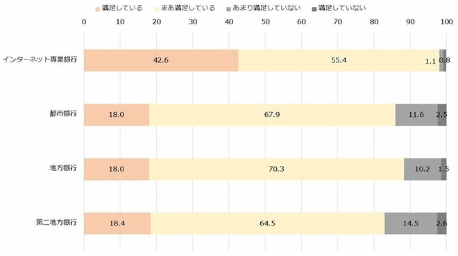 ネット銀行は店舗を持たず低い経費で運営できる分、対面型の銀行より預金金利や手数料が有利な傾向にあります。利用者の満足度も高く、全国銀行協会のアンケート調査によると、「満足している」と回答した人の割合は対面型の銀行を大きく上回りました。相次いでネット銀行が上場を申請できた背景には、利用者に選ばれている状況がありそうです。