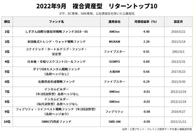 9月のリターン1位は「しずぎん国際分散投資戦略ファンド2018-05」(4.90%)
