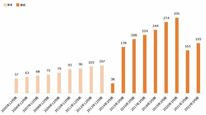 ちなみに、力の源ホールディングスの売上高は以下のように推移しています。連結決算への移行と決算期の変更があったため同時期を比較することはできませんが、新型コロナウイルスの影響がなかった2015年3月期~2019年3月期は平均して約9%増加しました。ラーメン業界全体を上回るスピードで成長していることが分かります。