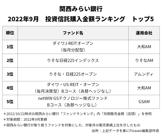 2022年9月、関西みらい銀行で多くの資金を集めたのは以下のファンドだった。