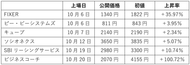 【2022年10月のIPO一覧】