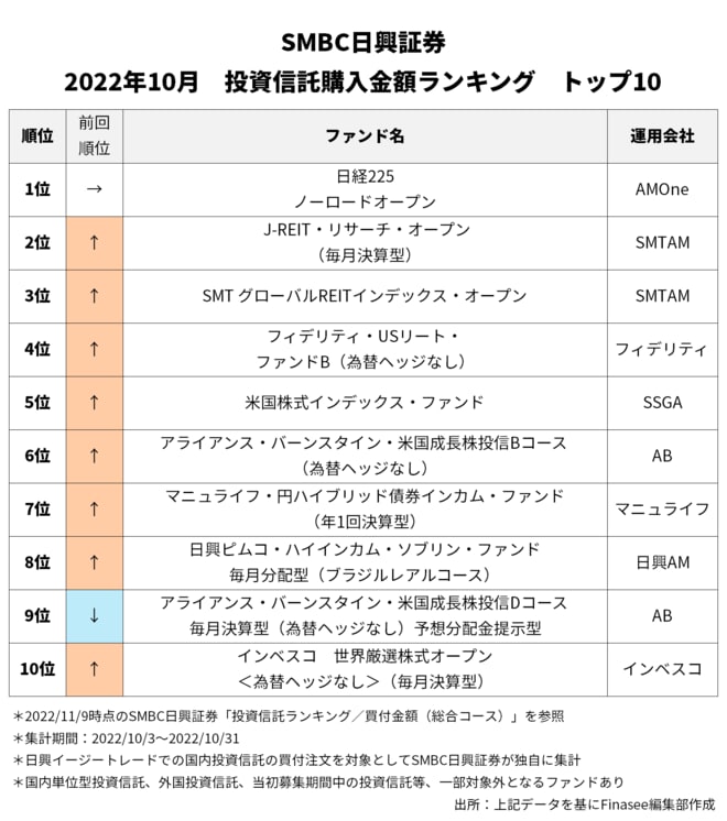 2022年10月、SMBC日興証券で多くの資金を集めたのは以下のファンドだった。