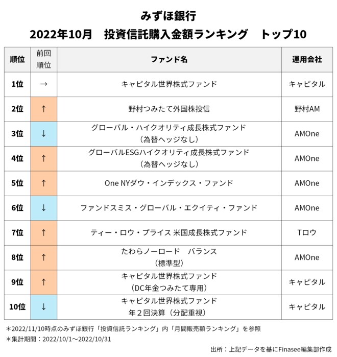 2022年10月、みずほ銀行で多くの資金を集めたのは以下のファンドだった。