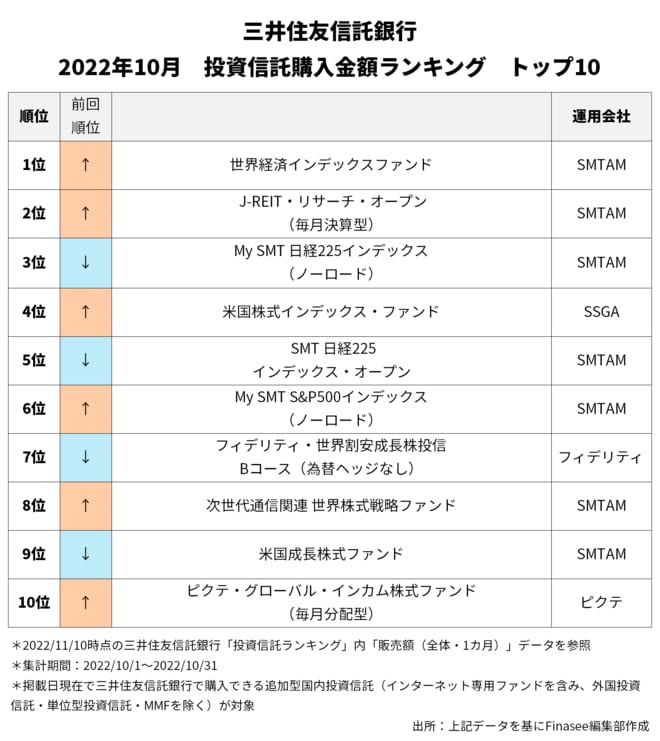 2022年10月、三井住友信託銀行で多くの資金を集めたのは以下のファンドだった。