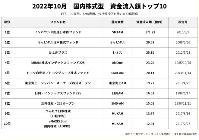 10月の資金流入額1位は「インバウンド関連日本株ファンド」(171.22億円)