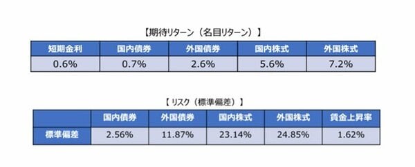 今度はリスクを考慮してみましょう。せっかくなので、ちゃんとした数字、今回は日本の年金を運用しているGPIF(年金積立金管理運用独立行政法人)の考えを参考にしたいと思います。