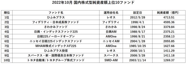 国内株式型ファンドの純資産額上位10ファンドは、以下の通り。