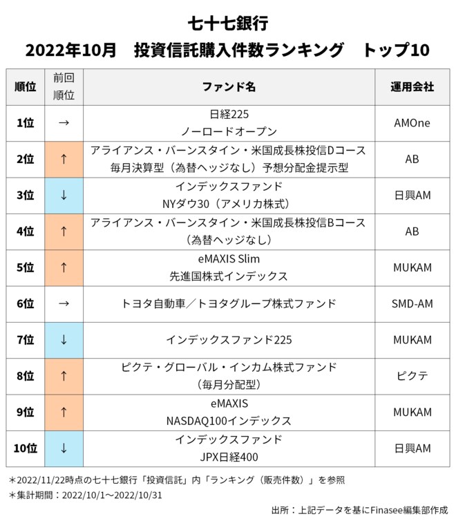 2022年10月、七十七銀行で多くの資金を集めたのは以下のファンドだった。