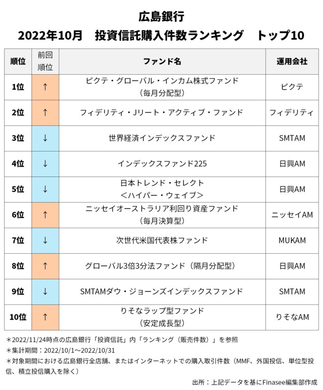 2022年10月、広島銀行で多くの資金を集めたのは以下のファンドだった。