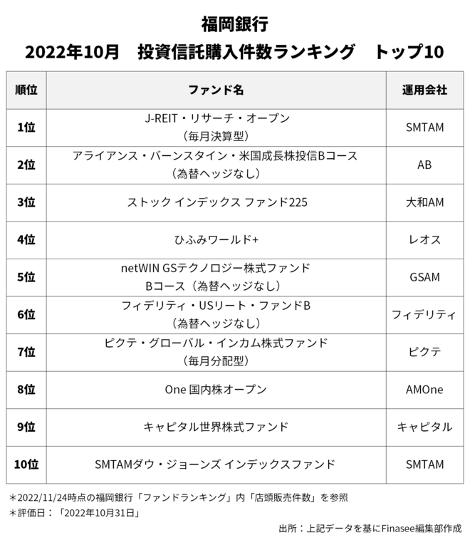 2022年10月、福岡銀行で多くの資金を集めたのは以下のファンドだった。