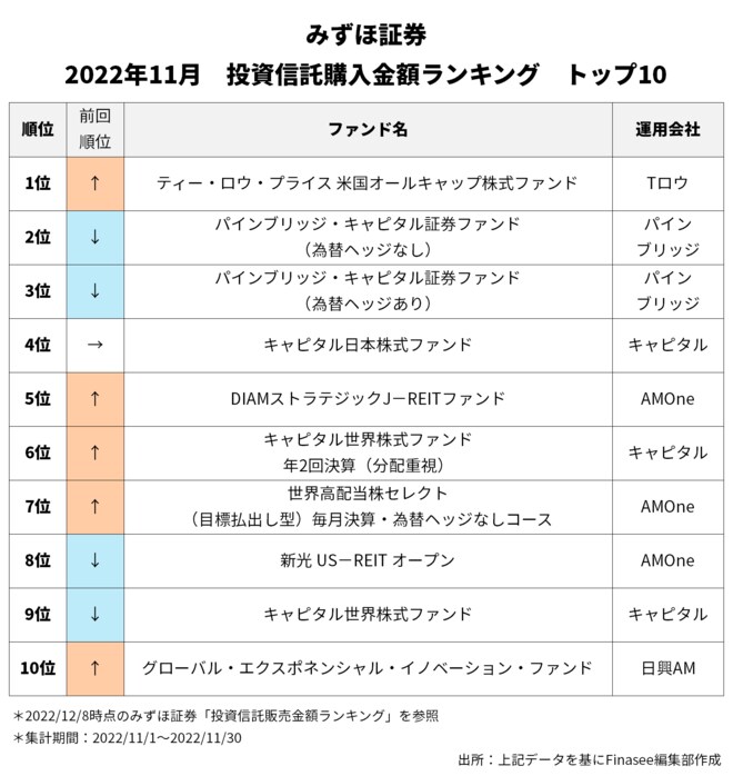 2022年11月、みずほ証券で多くの資金を集めたのは以下のファンドだった。