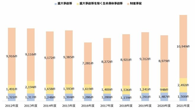 消費者が悪質な取引に巻き込まれるケースが後を絶ちません。消費者庁が毎年公開する「消費者白書」によると、2021年度に消費者庁に通知された消費者事故の報告は過去10年間で最も多くなりました。