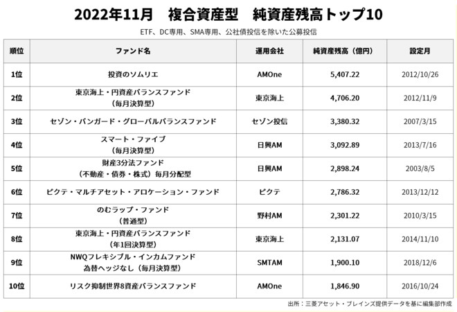 11月の純資産残高1位は「投資のソムリエ」(5,407.22億円)