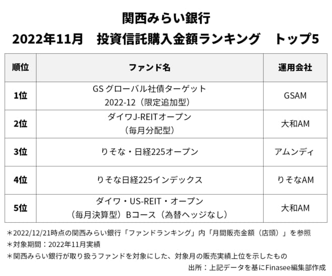 2022年11月、関西みらい銀行で多くの資金を集めたのは以下のファンドだった。