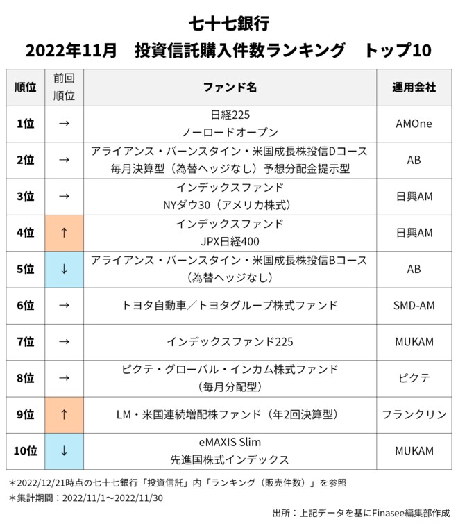 2022年11月、七十七銀行で多くの資金を集めたのは以下のファンドだった。